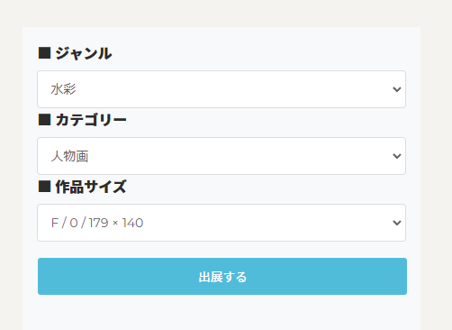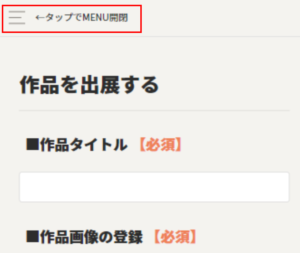 ※スマホの場合は、画面左上の三本線をタップしてメニューを開いてください。「作品を出展する」を選びます。
