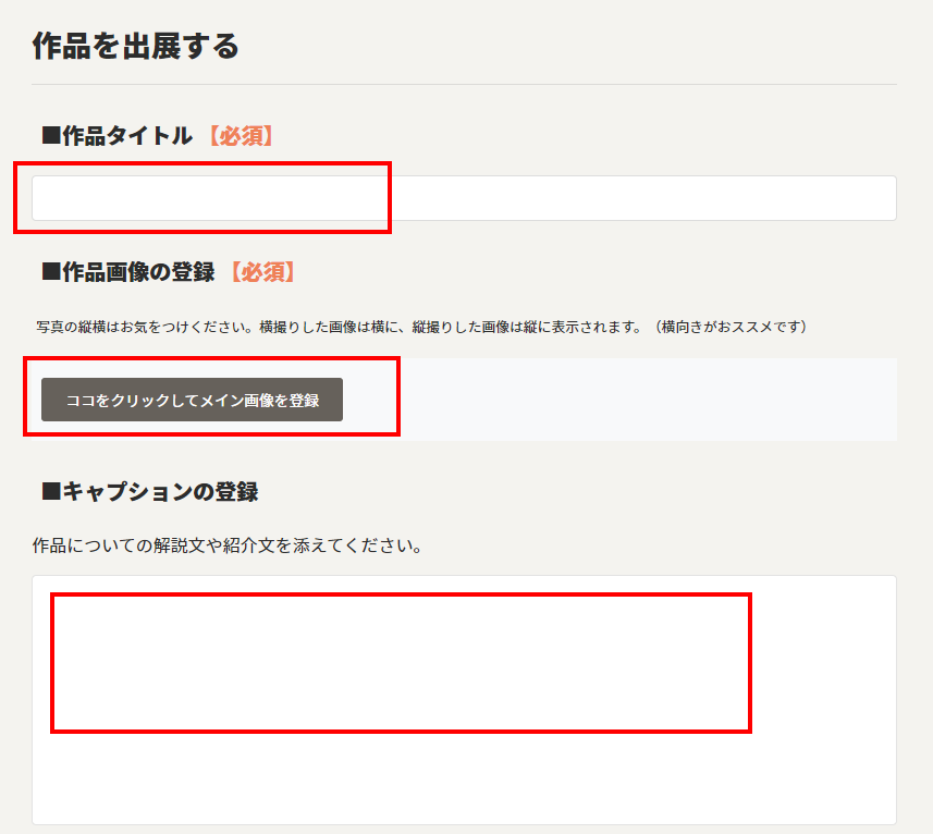 キャプションとは作品の説明のことです。なるべく短い文章で表現しましょう。